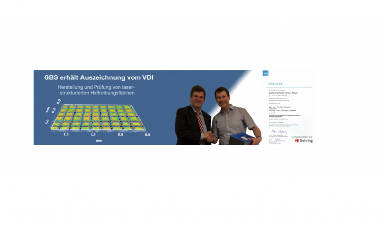 At the VDI Conference “Cylinder Liner, Piston, and Connecting Rod” 2018, GBS received the award for the best poster titled “Manufacturing and Testing of Laser-Structured Adhesive Friction Surfaces.”