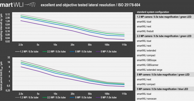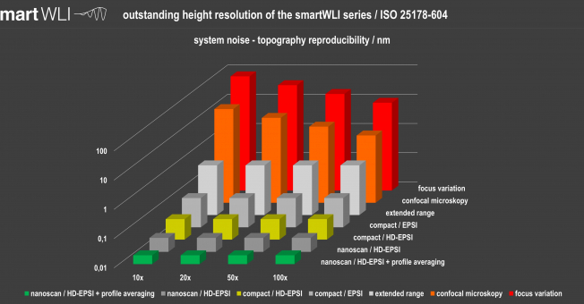 Die Höhenauflösung ist einer der wichtigsten Parameter in der Oberflächen Messtechnik. Unter allen optisch scannenden Messprinzipien bietet die Kohärenz-Scanning (Weißlicht-) Interferometrie die höchste Höhenauflösung die zudem – im Gegensatz zu konkurrierenden Messverfahren – unabhängig von der Objektivvergrößerung und Messfeldgröße ist